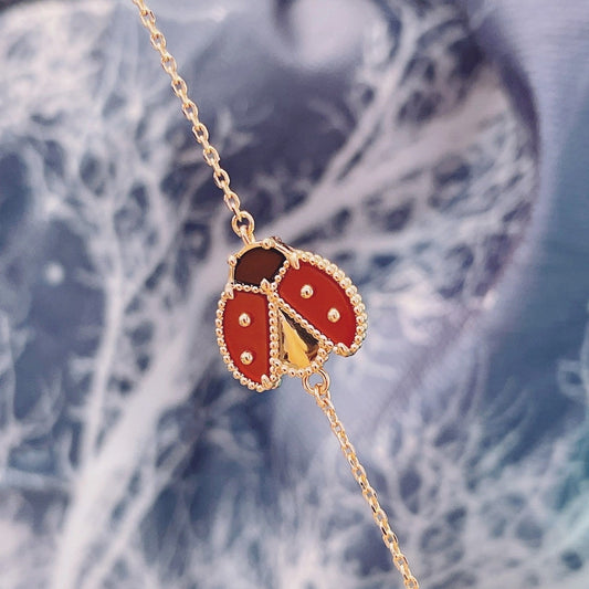 [vivabelle]CLOVER 5 MOTIFS CARNELIAN GOLD BRACELET